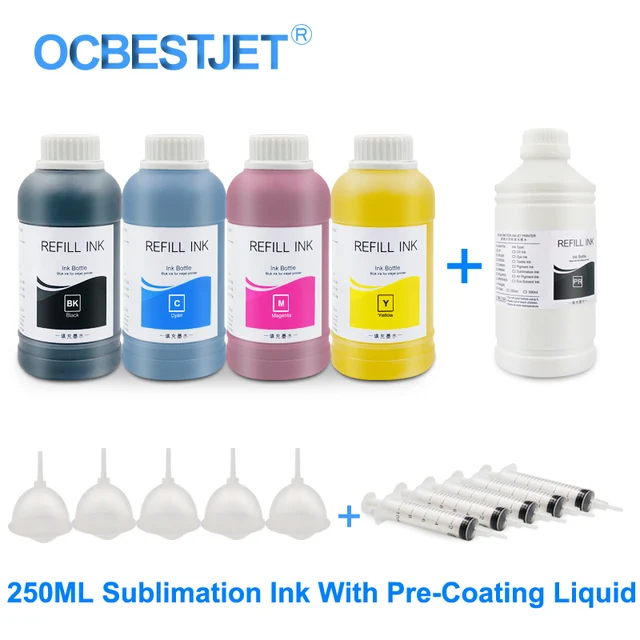 5 Bottles 250ML/Bottle Sublimation Ink With Sublimation Pre-Coating For Epson Printer Hear Transfer Ink Heat Press Ink For Cup